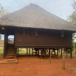 Vanochtend na het ontbijt zijn we meteen vertrokken naar de volgende Lodge, deze lag een heel eind verder weg en na een prachtige toeristische route van dik vier uur, kwamen we aan bij Grietje Nature Reserve, de naam Grietje komt van een Berg die zo heet. Na een flinke paspoort en incheck papieren controle konden we eindelijk het reservaat in, de wegen in het reservaat zijn hobbelig, kuilen zand, veel olifanten poep🤣 eigenlijk was de auto van Daniel er niet voor bestand maar we hebben rustig aan gedaan, na wat zoeken in de middle of nowhere kwamen we terecht bij onze Lodge Ngalali Retreat echt schitterend.