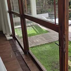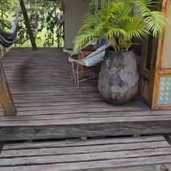 Na onze wandeling zat er een grote aap op ons terras hij wilde graag naar binnen, maar wij waren sneller, zo grappig!
