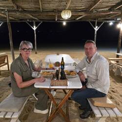 Samen nog even een glaasje gedronken en nu gezellig op bed even samen deze footprint schrijven en dadelijk snel onder de wol want morgenvroeg loopt onze wekker om 4.45 uur af om op een vroege ochtend safari te gaan.
