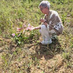 In het dorre veld zie ik een prachtige bloem ik loop er naar toe om deze bloem goed in me op te nemen.