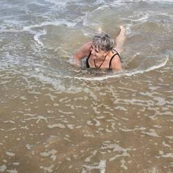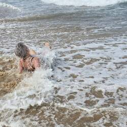 Als kleine kinderen hebben we in de branding gespeeld, en zo moeten lachen om elkaar, de golven waren hoog en krachtig, dat bracht een hilarisch tafereel, we hadden het strand voor ons alleen, maar goed ook🤣