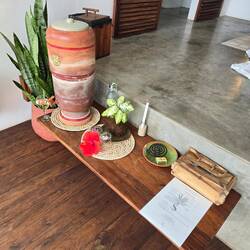 Voordat we beginnen gaat Carlos ons voor in het gebed, vervolgens laten we onze spulletjes aan de eigenaar zien die we willen achterlaten om onze lieve Monika te eren.