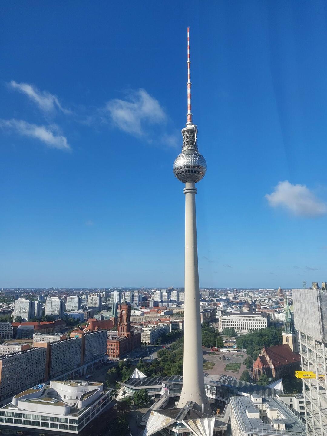 1,2 This is a television broadcasting tower with a restaurant at the top. Was built when Russia controlled East Berlin.
