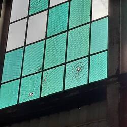 In the last photo, that is a window to an airplane hanger with bullet holes in the window from a Japanese fighter plane that attacked Pearl Harbor.