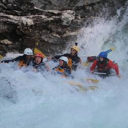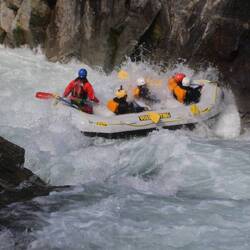 Actiongeladenes Wildwasser-Rafting der Klasse 4+ auf dem mächtigen Fluss Raundal in Voss.