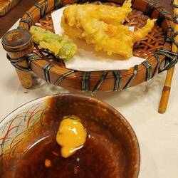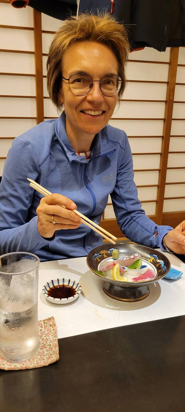 Einmal mehr geniessen wir einen feinen Z'Nacht in einem typischen japanischen Restaurant. Wir haben für uns zwei ein eigenes Zimmer und sitzen auf Tatami-Matten. Diesesmal ist es aber ein bisschenLeggi altro