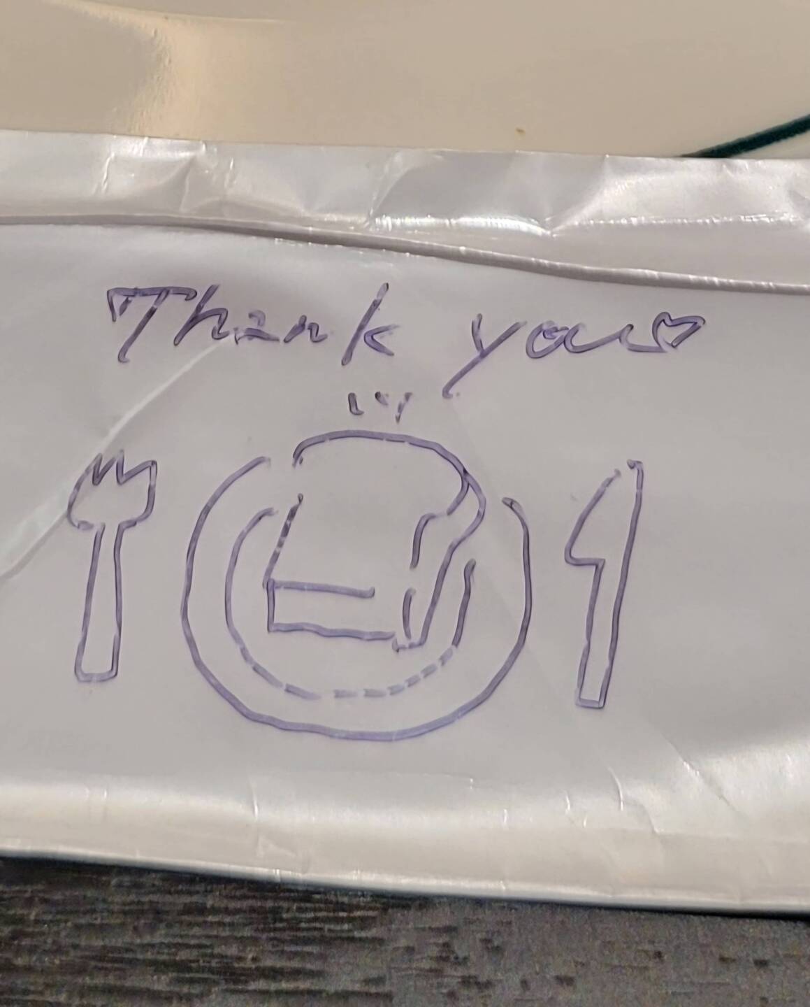 Zum Frühstück werden wir mit einem persönlich signierten Feuchttüchli zum Händewaschen überrascht.