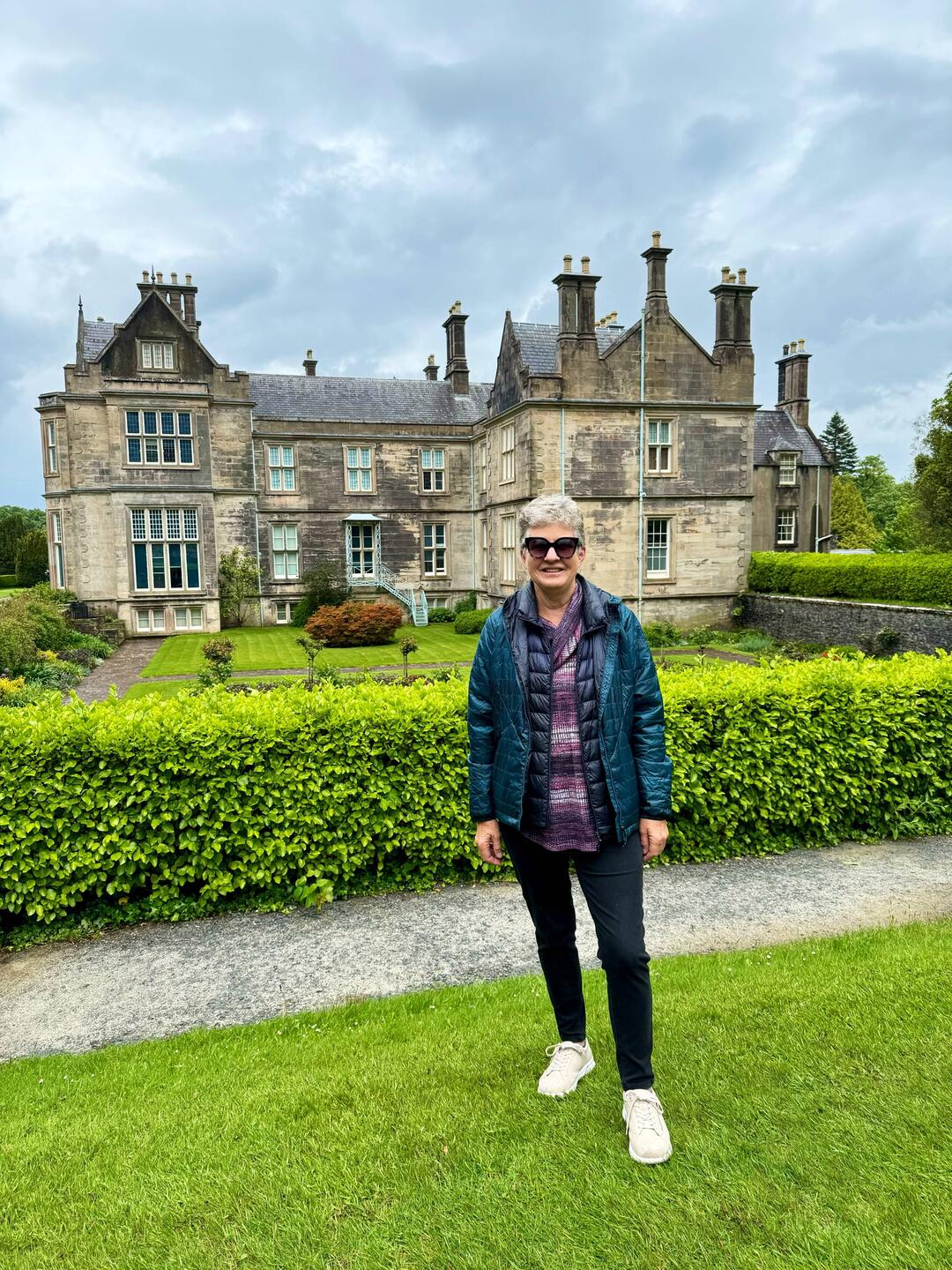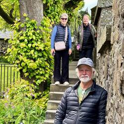 It’s a showery day so first off is Muckross House, mainly because it will be dry. A beautiful 19th century house, set on the shores of Lake Muckross, one of the three lakes in Killarney. Most of it has been restored and is set up in its original state. It has beautiful gardens and luckily the rain stopped for us to have a brief look around them. So many flowering rhododendrons! They have a weaver on site and make their own cloth for coats, hats and scarves. Graham and Karry both bought a new hat.