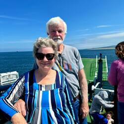 After lunch at Farren's Pub and a lovely scenic drive, we arrived to take the Lough Foyle Ferry across to Northern Ireland to our next stop on the Causeway Coast - Ballintoy. The weather has just got better and better today.