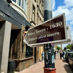 The whole museum was extremely well done. We all enjoyed it. We got the glider back to the city in the sunshine, but by the time we got off, it was blowing a gale and starting to rain. We were looking for somewhere for lunch, and just by pure chance, picked the oldest pub in Belfast, White’s Tavern. They were just opening and we were greeted by the friendliest barman, who brought us drinks, food and a tour of the old bar.