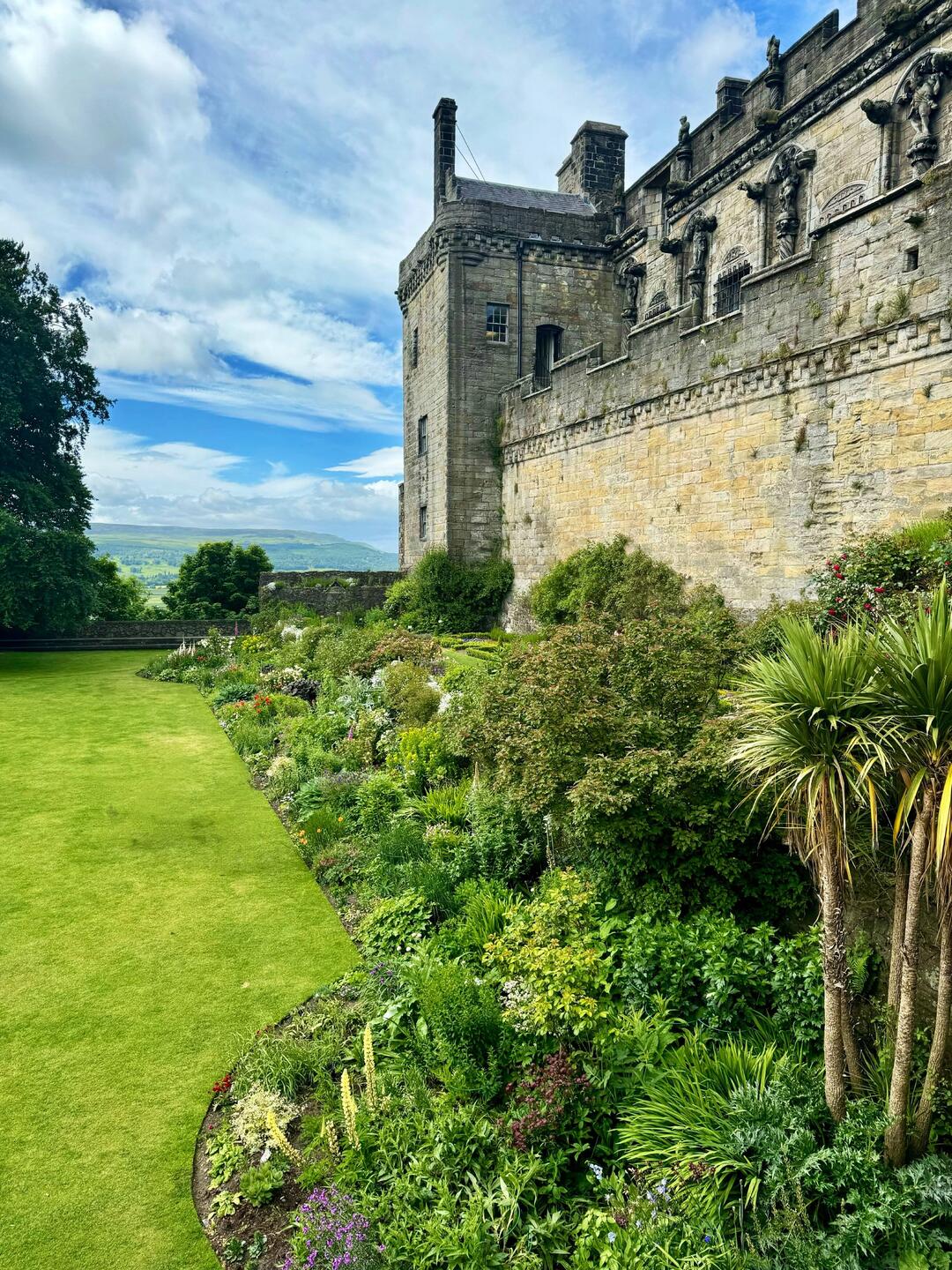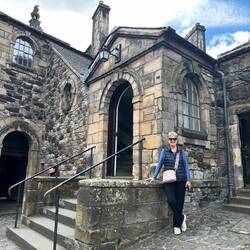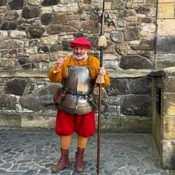 We can’t get into the accommodation until 4pm so we took ourselves up to Stirling Castle for a visit. What a magnificent place. We had a fabulous tour guide with a great booming voice, funny and knowledgeable. The castle sits high up on the hill overlooking Stirling with fabulous views of the surrounding countryside. Parts of it, the kitchens, guard house, vaults and some living rooms are set up as they would have been when the Kings of Scotland were living there. Queen Anne’s garden at the front of the castle was filled with flowers. You could just imagine her sitting there enjoying the sunshine.