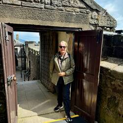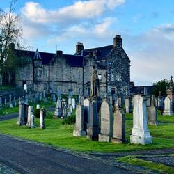 We booked a Stirling Ghost Walk Tour tonight up at the local church tonight. We were met with our guide in full dress and character! It was a mix of storytelling, drama and comedy while we listened and walked around the graveyard.