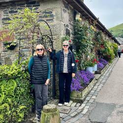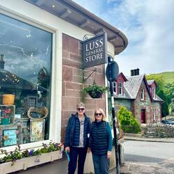 Today is looking good, the sun is out and the visibility to the mountains is amazing. The locks, the fields, all the sheep, cattle and the mountains make for a lovely drive. We stopped for morning tea at The Duck Hotel. Fancy place on the water with a great selection of cakes. We tried four different ones and shared them. Ten minutes driving and Marl realised she had left her glasses on the table so around we went and luckily they were still there. Next stop is the cute little village of Luss. Cruises across the lake leave from here so it’s a popular place, full of lovely cottages with flowers around them, a nice beach, a few gift shops and a pretty church.