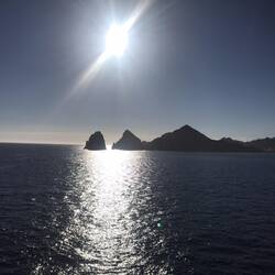 At anchor just off Cabo San Lucas enjoying my morning view of the Sea of Cortez aka the Gulf of Baja California and El Arco.