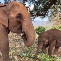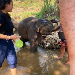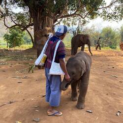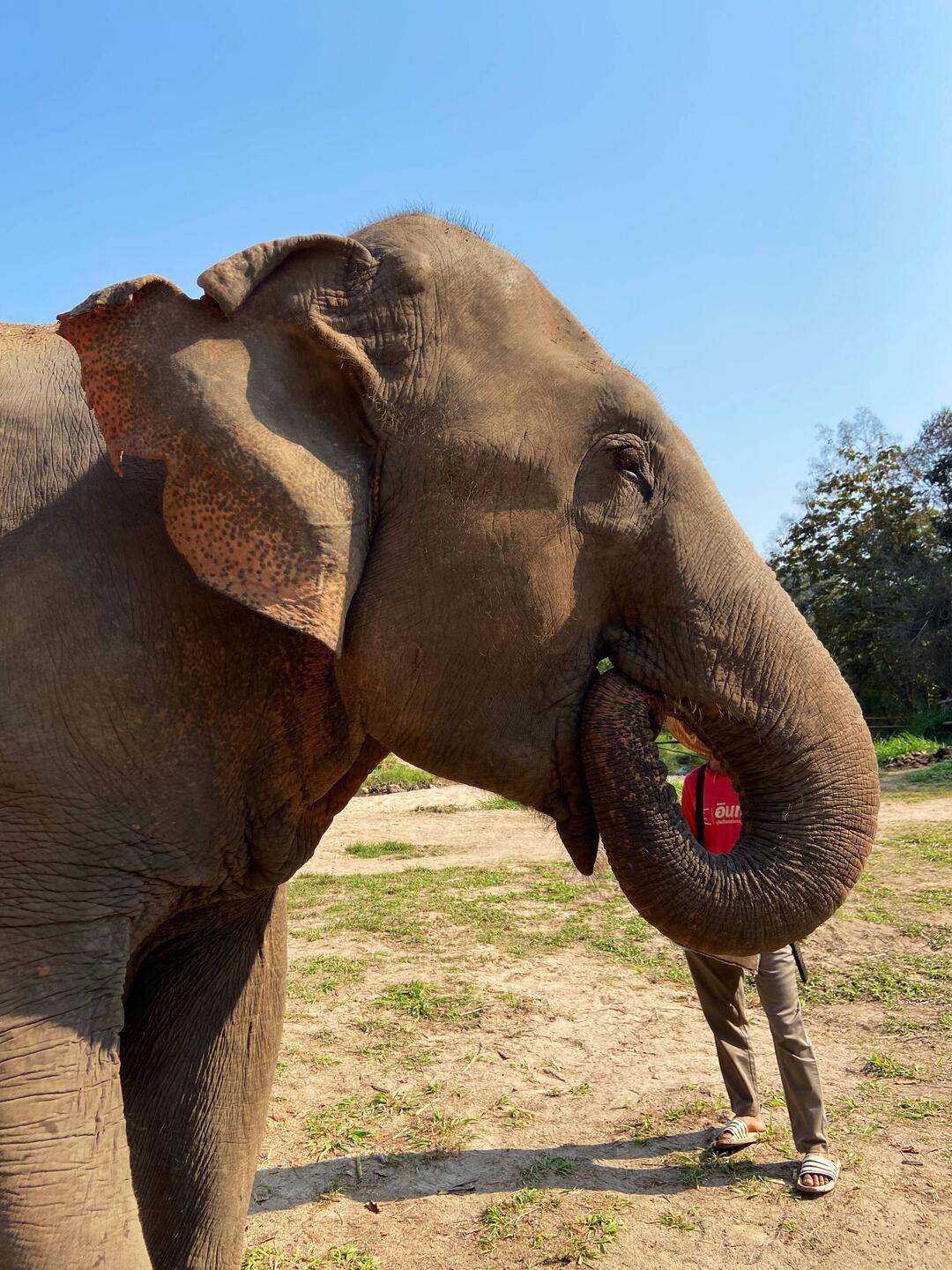 Wir waren heute morgen in einem Elefantenschutzgebiet und konnten Elefanten füttern und mit ihnen „baden“ 🐘