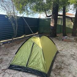 Mir si guet oberhaub vo malaga acho & gniesses ä campingplatz zwüsche bärge/ meer.