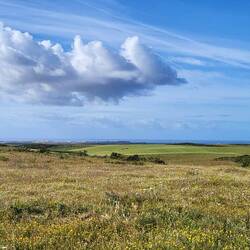 Südseite bzw. Algarve deutlich erkennbar. Ruhige See, keine so hohen Klippen.