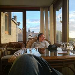 We hebben net heerlijk Indiaas gegeten en nu genieten we van de zonsondergang in de serre van de B&B. De bedden liggen fantastisch en de badkamer ziet er ook heel netjes uit. Morgen er weer vroeg uit zodat we rustig aan richting het zuiden kunnen. Van de garage niets meer gehoord, dus we gaan morgenvroeg weer even zelf bellen.Baca lagi