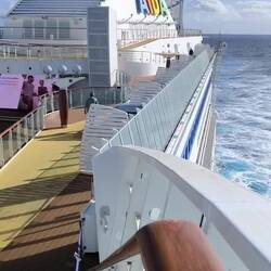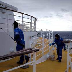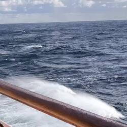 Heute ist es stürmisch. Deck 5 ist gesperrt, und auch auf dem Oberdeck dürfen die höchsten Bereiche von den Passagieren nicht mehr betreten werden.