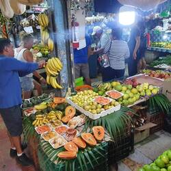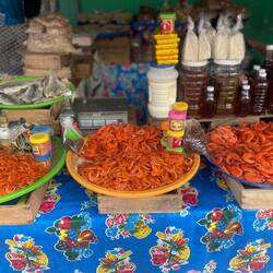 Market durchstöbert, sehr guten Fisch und Garnelen gegessen.