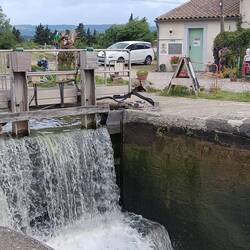 We stopped overnight at a camping car Aire in Homps. There is a nice marina next to the site and the midi canal for hiking also a lake that allows swimming. Not much in the village itself a couple ofRead more