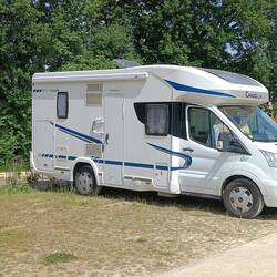 After our trip to Quimper we wanted somewhere to chill out for the evening, we found a nice lakeside free aire in the town of Rosporden. The location is very good with views of the lake and a green way running alongside the aire. Only issue we had was the parking is under huge tree's and it rained most of the night so we didn't have a peaceful sleep.Read more