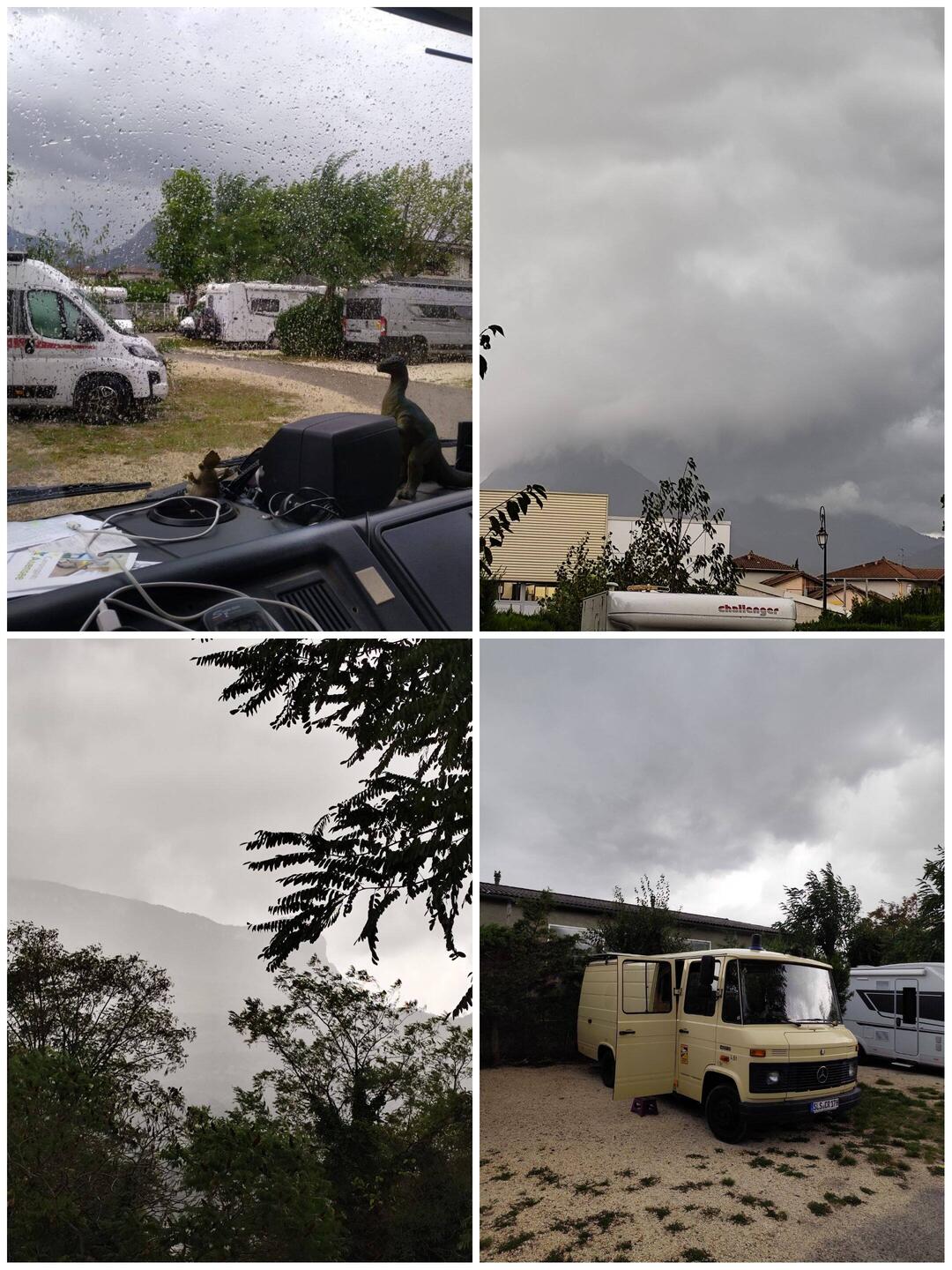 Ein paar Gewitter gehabt unterwegs und etwas Stau.
