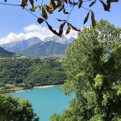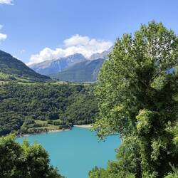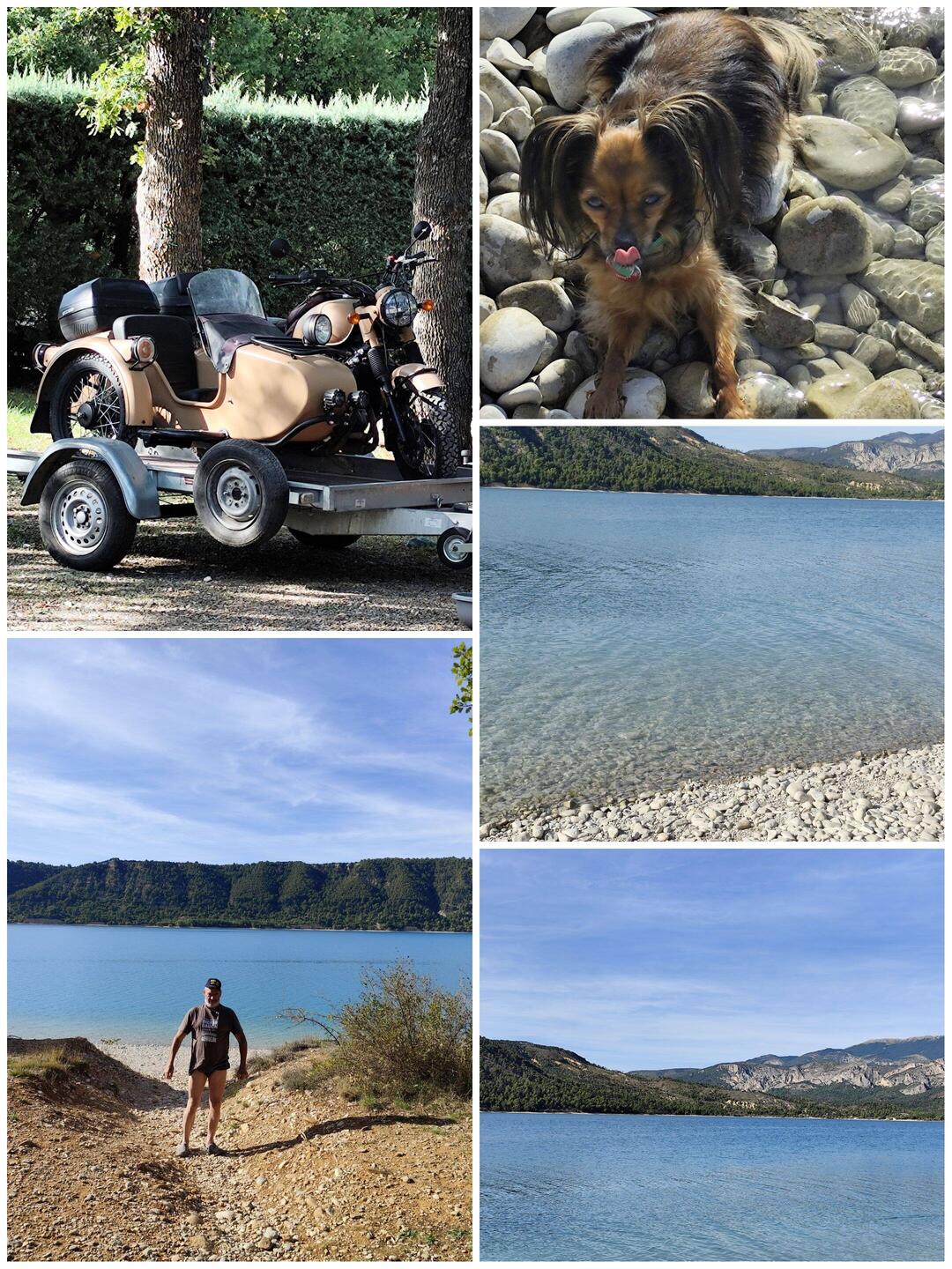 Durch die Verdon Schlucht an den Campingplatz Municipal der nur 100 m vom See entfernt liegt. Marcel war baden und selbst Ronja war es so warm, dass sie sich ein bisschen ins Wasser gelegt hat .
