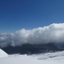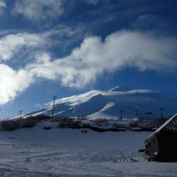 Nach einiger Überlegung habe ich die Tour zum Vulkan gemacht. Es gibt hier einige Vulkane, aber man braucht immer Schnee- und Eisequipment, um sie zu besteigen. Weiter gibt es bei diesem strenge Bestimmungen, wer ohne Guide hochdarf, da es einer der aktivsten Vulkane Chikes ist (der letzte Ausbruch war 2015). Es war bisher die teuerste Tour, die ich bisher gemacht habe (80.000 CLP für einen Tag ohne Essen - ich bin mit summit chile gegangen und die Oganisation des Ganzen war super). Gestern habe ich schon das Equipment (wieder Steigeisen, Pickel und Schneekleidung) anprobiert, deshalb ging es heute früh direkt los. Da es die ganze Nacht geregnet hatte, lag am Vulkan Einiges an Neuschnee. Wir starteten auf 1500m und wanderten bis zur Spitze auf 2847m. Das Tempo war für mich gemütlich und vom Schwierigkeitsgrad war es auch relativ leicht für mich (ich vergleiche es immer mit Huayna Potosi, vielleicht deshalb). Bis zur Hälfte war es sonnig mit guter Sicht, ab dann ist es zugezogen und immer windiger geworden. Eine Stunde vor der Spitze war der Wind dann so stark, dass sich der Schnee wie Nadeln im Gesicht angefühlt haben - so extrem starken Wind, dass ich mich aktiv dagegen lehnen musste, habe ich noch nicht erlebt. Oben hat man leider nicht viel gesehen, nur kurz, wenn die Wolken aufgerissen sind. Wenn man Glück hat, kann man Lava sehen. Aber der Rand des Kraters ist trotzdem beeindruckend und die gefrorene Lava drumherum; und man kann den Schwefel riechen.
