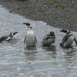 Heute habe ich mir eine Fahrt auf den Beagle-Kanal gegönnt. Wäre der Katamaran einfach weiter gefahren, wären wir nach 2 Tagen auf der Antarktis angekommen. Das geht mir nur schwer in den Kopf. Man sieht hier der Landschaft nicht unbedingt an, wie nah man hier der Antarktis ist. Erst als wir die Pinguine auf kleinen Inseln auf dem Kanal gesehen haben, war es ein bisschen realer. Das Wetter passt auch, es hat tagsüber um die 7 Grad obwohl es Ende Frühling ist und windig ist es auch.
