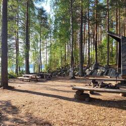 Wir fahren noch eine kurze Strecke zum Leivonmäki Nationalpark, sozusagen auf Empfehlung von Volker. Nach einer kurzen Kaffeepause machen wir noch eine kleine Pilzwanderung zu einer Feuerstelle am See. Es ist ziemlich warm, am See weht ein angenehmer Wind. Superschöner Rastplatz mit allem was das Herz begehrt. Und ja, es gibt Pilze. Obwohl es recht trocken ist, gibt es genug Pfifferlinge, Birken- und Steinpilze für ein leckeres Essen. Morgen wollen wir den NP mit dem Fahrrad umrunden, dann aber weiterfahren. Weil das Wetter sehr schön bleiben soll, haben wir da so eine Idee.