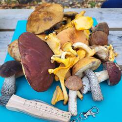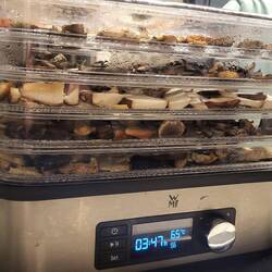 Auto ist aufgeräumt, Pilze im Trockner und in der Pfanne, morgen geht's weiter.
