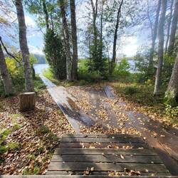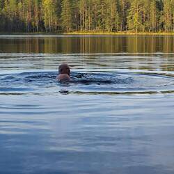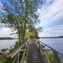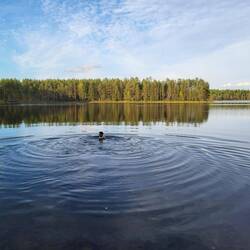 Wir wollen keine zweite Nacht bleiben, aber trotzdem eine Tour durch und um den Nationalpark machen. Das Wetter ist wie angesagt einfach nur sonnig und schön. Die ersten 10 Kilometer der Tour führen auf leicht hügeligen Waldwegen durch die schöne Landschaft des NP. Die leichte Koomot Tour endet dann aber abrupt an einem schmalen Weglein, das ziemlich steil bergab geht und mit wunderbaren Holzstämmen, die allerdings quer über dem Weg liegen. Das hat Mr. Koomot irgendwie übersehen. Na ja, absteigen und schieben. Und genau darauf haben irgendwelche kleine schwarze Monster nur gewartet: Unter dem Helm, in den Haaren, im T-Shirt, auf der Brille..... es krabbelt jetzt noch. Der Rest ist dann kein Problem und wir machen uns am frühen Nachmittag auf. Wir wollen aufgrund der guten Wettervorhersage einen Stopp am Peurajärvi vorziehen. Dort hat es uns letztes Jahr einfach so gut gefallen, daß wir nochmal hin wollen. Das ist zwar etwas Zickzack Richtung Norden, aber was soll's. Ins Arcticum können wir auch bei Regen. Allerdings machen wir einen Zwischenstopp in Lapinlahti, damit die Strecke nicht zu lang wird.Read more