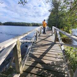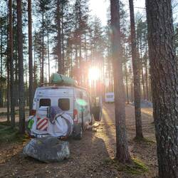 Wir verlassen den schönen Platz in Rokuan und fahren wieder Richtung Süden. Unser Ziel ist der Salamajärvi Nationalpark, der für Waldrentiere bekannt ist. Die letzten 20 Kilometer gehen über eine wirklich schlechte Waldpiste, aber Elke sieht das erste mächtige Waldrentier auf einem Seitenweg. Wir landen auf einem Basic - Campingplatz, sehr schön gelegen zwischen 2 Seen. Es ist sehr einfach, aber alles vorhanden, leider keine Duschen. Eine sehr nette Finnin hilft uns beim bezahlen, da dies ansonsten nur mit einer finnischen App möglich wäre. Wir wollen 2 Tage hier bleiben, es gibt einiges zu entdecken.Read more