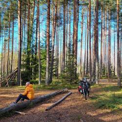 Der Tag beginnt mit Wind und Regen. Erst zur Mittagszeit starten wir noch eine kleine Unternehmung zu einem Wandergebiet. Es sind nur wenige Kilometer mit dem Rad dorthin, aber wir werden nicht enttäuscht. Klein, aber fein, schönes Waldgebiet und die Sonne kommt auch noch raus. Nach einer Runde wollen wir noch ein Stück weiter, aber die Steinpilze bremsen uns letztlich aus. So streifen wir durch den Wald, sammeln Pilze und Beeren, einfach schön, in der Natur zu sein.