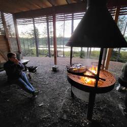 Der nette Finne am Feuer ist sehr gesprächig und hat einige gute Tipps für finnische Outdoor und Camping Apps.