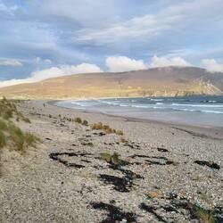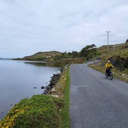 2. Tag in Renvyle. Es ist bedeckt und windstill, gutes Wetter für eine Tour entlang der Küste. Handschuhe sind aber nicht schlecht heute.