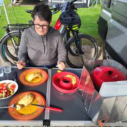 Es gibt nicht soviel zu erzählen: ein Reisetag. Es ist schon wieder schön warm am Morgen und wir meistern die Strecke im 5 Stunden. Im Rewe wird noch für die nächsten Tage eingekauft.