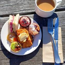 Erste Station Auckland Zoo ...da lass ich mich als erstes nieder und genieße ein Frühstück in der Sonne von Vogelgezwitscher umgeben.....