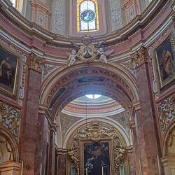 Und drinnen eine unglaublich hohe Kuppel mit Ornamenten und Rosetten verziert....die Seitennischen sind ebenfalls reich verziert....