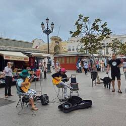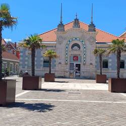 Die Markthalle ist ein ganz hübsches altes Gebäude....mit Springbrunnen in der Mitte...es gibt alle möglichen Geschäfte...von Kurzwaren bis Gemüse....nur Fisch gibt es nicht....