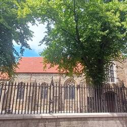 Die Kirche ist auf der anderen Seite...ohne Turm...mit doppeltem Kirchenschiff...