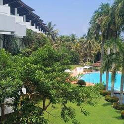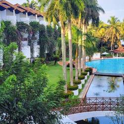 Mein Zimmer ist perfekt gelegen.....Gleich in der Nähe der Ayurveda Abteilung ...Im zweiten Stock mit großem Balkon und Blick auf den Pool und ohne rankendes Gemüse....