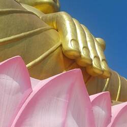 Dann kommt der Tempel in Sicht....ohhh groß und goldend überragt die Buddhafigur den Tempelberg....