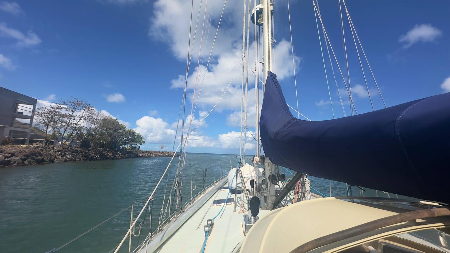 Leider kein Wind im Moment. Mit Eisensegel unterwegs. Gleich kommen wir aus der Abdeckung, dann sollte es wieder gehen.