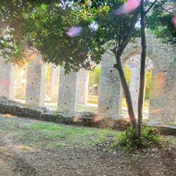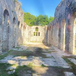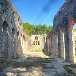 Auch nach dem Niedergang der Spätantike blieb die Basilika in Funktion: Umbauten im 9. Jahrhundert und eine Nutzung bis ins 16. Jahrhundert belegen ihre fortdauernde Bedeutung. Heute erhebt sich ihre Ruine still und majestätisch unter Pinien – ein steinernes Echo jener Zeit, als Butrint ein Zentrum des Christentums in Epirus war.