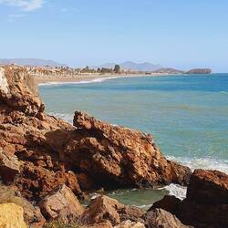 Die Gredas de Bolnuevo , auch Ciudad Encantada genannt , sind stark erodierte Sandsteinformationen am Strand von Bolnuevo. Die Sandsteinformen wurden über Jahrtausende durch Wasser und Wind geformt und gelten als Denkmal von natürlichem Interesse .