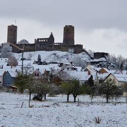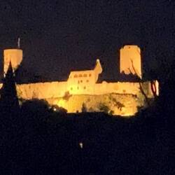 Am Fuße der Burgruine ist unser letzter Übernachtungsplatz. Es schneit und ist stockdunkel, lt. P4n soll die Ruine nachts beleuchtet sein. Man sieht nichts!
