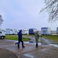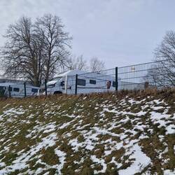Alle Aufregung umsonst! Der Platz ist noch komplett leer! In einer Ecke steht nur ein Dauerparker.