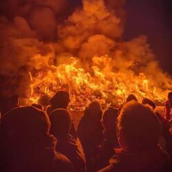 Ein kurzer Spaziergang bis zum Biikehaufen - die Fackelträger kamen uns gerade von dem Wattforum entgegen. Musik, eine kurze Rede und die Fackeln wurden auf die Biike geworfen, um das Feuer zuLæs mere